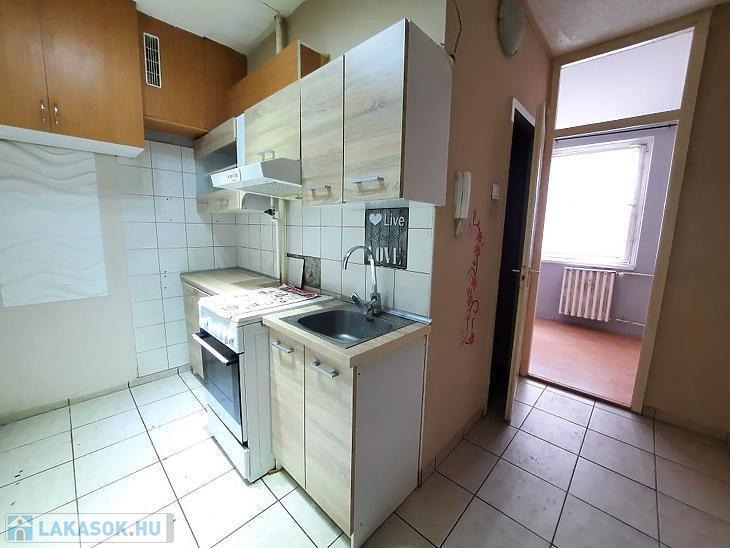 A konyha és a fürdőszoba átlagos állapotú, a konyhabútor a vételár részét képezi.