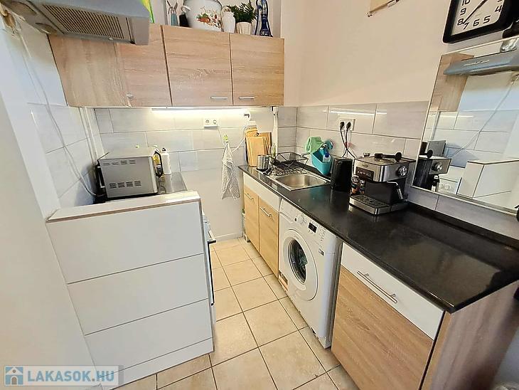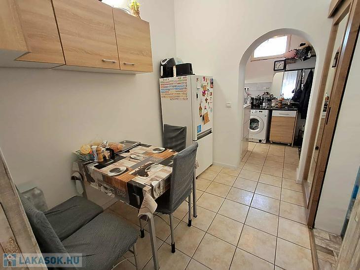 A lakásban galériázott nappali, szoba, konyha, fürdőszoba, és étkező található. 2018-ban történt a teljes víz- és villanyhálózat korszerűsítése, a burkolatok cseréje. A nyílászárók műanyag, hőszigetelt ablakok, redőnnyel és szúnyoghálóval vannak ellátva, a bejárati ajtó egy több ponton záródó, acél biztonsági ajtó. A nappaliban és a szobában 15 cm-es lépésálló szigetelés került az aljzatra, illetve az udvar felőli homlokzat 10 cm-es hungarocell szigeteléssel van ellátva. A fűtésről gázkonvektor gondoskodik , klíma is rendelkezésre áll. A konyhabútor a vételár részét képezi. Autóbeállási lehetőség van, közvetlen 15 m2-es kert is tartozik a lakáshoz.