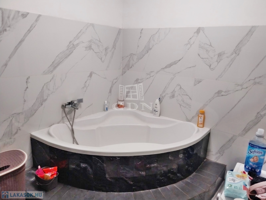 Kényelmes méretű fürdőszobája nagy sarokkádal és épített zuhanyzóval is rendelkezik emelve a komfort érzetet.