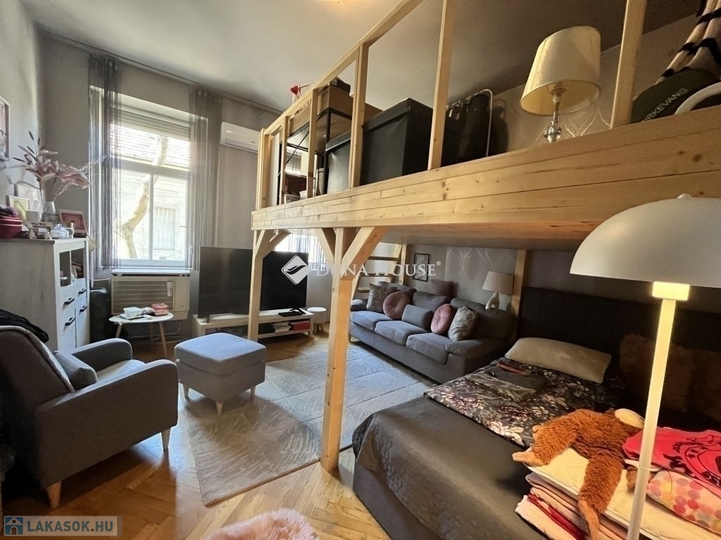A lakás minden négyzetmétere praktikusan kihasznált, a belső tér különlegességét egy gyönyörű fa galéria adja, amely otthonos, meleg hangulatot kölcsönöz.