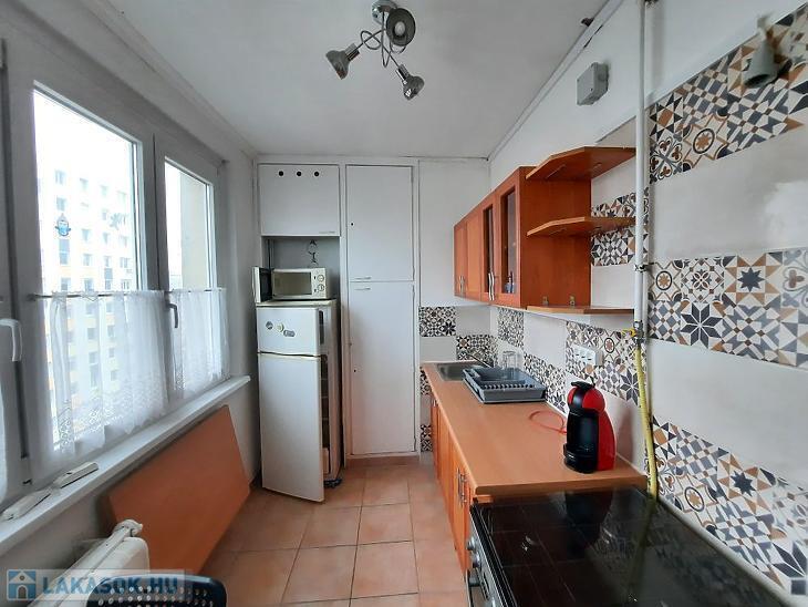 A helyiségek burkolatai igényes állapotúak: a közlekedő és a konyha járólapos, a szobákban laminált parketta található. Műanyag nyílászárókkal rendelkezik. A lakás komfortját hűtő-fűtő klíma is növeli. A fűtést korábbi típusú, de egyedi mérős radiátorok biztosítják, ami gazdaságos fenntartást eredményez. A tágas erkély csendes, zöld parkra néz, így tökéletes helyszín a reggeli kávéhoz vagy egy esti pihenéshez. A konyhabútor a vételár része, a többi bútor megegyezés tárgyát képezi.