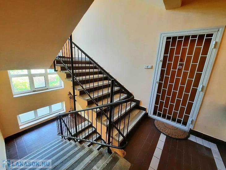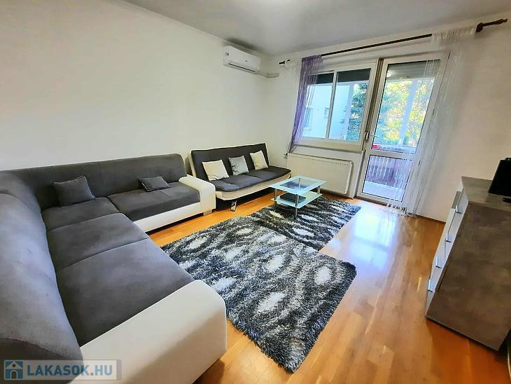Jó állapotú, két szobás lakás, az előszobában beépített szekrénnyel és a nappaliban klímával felszerelve. A szobákban fa parketta, a többi helyiségben járólap található. Hőközponti fűtés biztosítja a meleget. A műanyag hőszigetelt ablakok redőnnyel és szúnyoghálóval vannak ellátva. A vételár részét képezi az 5 m2-es tároló.