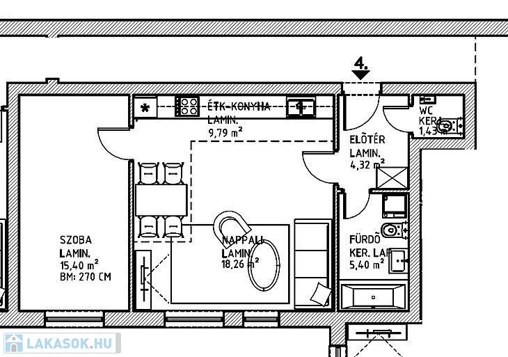 A lakásban tágas amerikai konyhás nappali, 1 szoba, fürdőszoba, előszoba és mellékhelyiség kerül kialakításra.