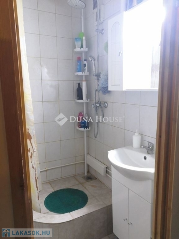 A fürdőszobát zuhanyzóssá alakították át, magasföldszinti, szinte akadálymentes elhelyezkedésével párosítva így az ingatlan időseknek is ideális választás.