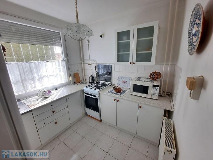 Az ingatlan elosztása praktikus: egy tágas nappali, két szoba, ablakos konyha és egy kamra található benne. A fürdőszoba (zuhanyzós) és a WC külön helyiségben kapott helyet. A lakás műszakilag karbantartott: a nyílászárók modern műanyagra lettek cserélve, a fűtésről lapradiátorok gondoskodnak. A szobák laminált parkettásak, a vizesblokkok burkolatai normál állapotúak. Tehermentes.