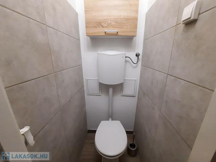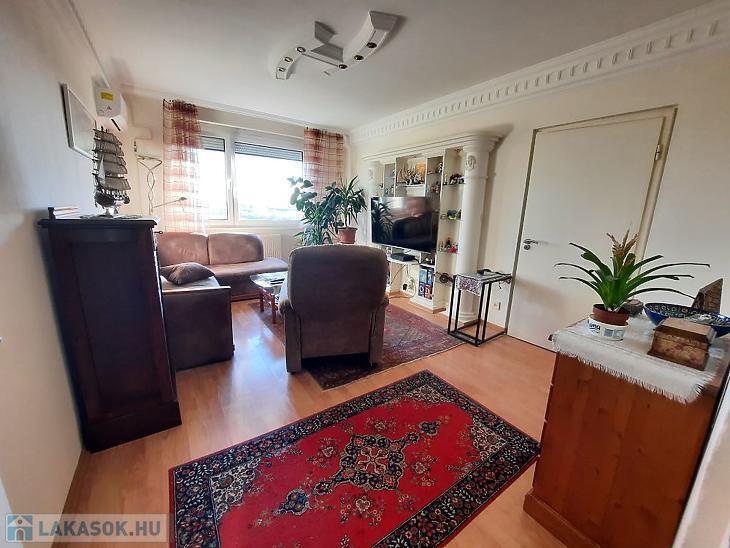 A közlekedő, konyha, fürdőszoba+ wc járólapos, a szobákban laminált parketta található. A fürdőszoba 2 éve felújított, a konyhabútor megkímélt állapotú, és a vételár részét képezi a tűzhellyel és a sütővel. A lakásban két darab hűtő-fűtő klíma gondoskodik a kellemes hőmérsékletről télen-nyáron. A lakás tehermentes!
