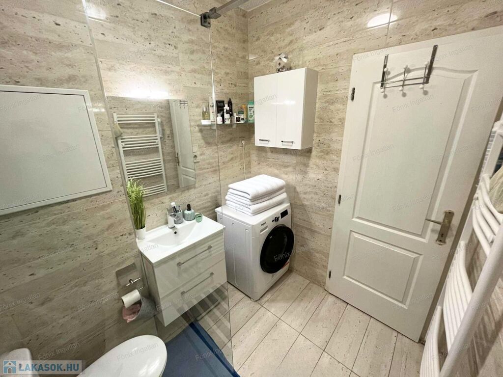 A fürdőszoba néhány évvel ezelőtt teljes felújításon esett át, így modern és jó állapotú.