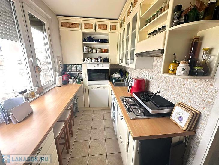 A konyha szép állapotú, praktikus kialakítású. A beépített konyhabútor a vételár részét képezi!