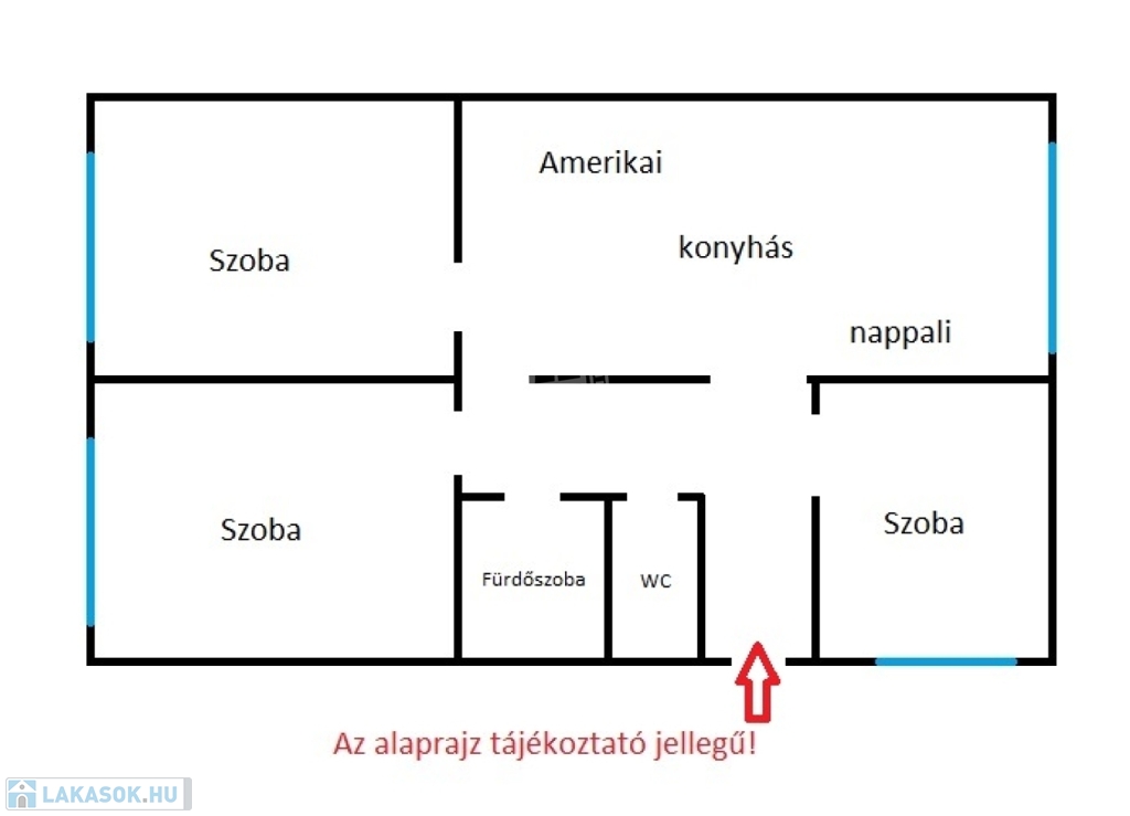 - praktikus, külön nyíló szobák — ideális gyerekszoba, dolgozószoba kialakítására