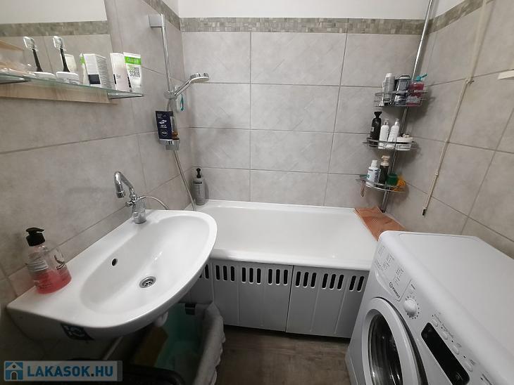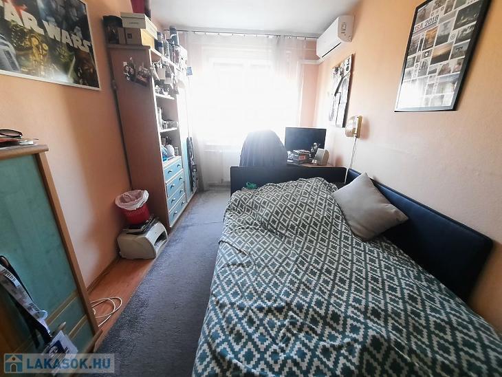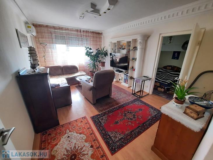 A közlekedő járólapos, a szobákban laminált parketta található. A fürdőszoba 2 éve felújított, a konyhabútor megkímélt állapotú, és a vételár részét képezi a tűzhellyel és a sütővel.A lakásban két darab hűtő-fűtő klíma gondoskodik a kellemes hőmérsékletről télen-nyáron.