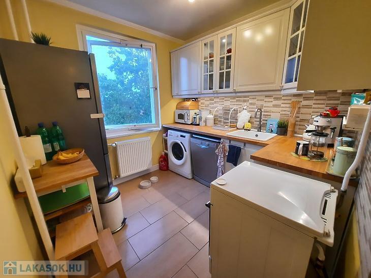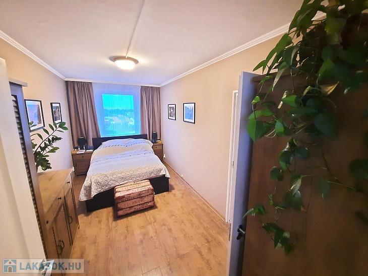 Eladó egy kertvárosra néző loggiás, 65nm-es, jó állapotú, 2+1 szobás panellakás a Páskomliget utcában – tárolóval, gardróbbal, jó elosztással!