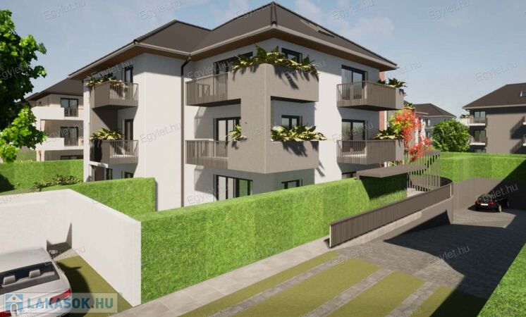 Ennél a beruházásnál még több egyéb méretű lakás elérhető, akár a nettó 86 nm-es 4 szobás lakásig, a földszinten kertkapcsolattal, vagy az emeleti lakásoknál dupla teraszokkal.