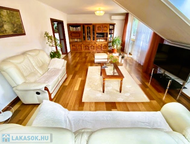 XVI. kerület közkedvelt kertvárosi részén, Rákosszentmihályon eladó egy nettó 136 m²-es, nappali + 3 hálószobás, duplakomfortos, erkélyes, újszerű állapotú lakás. A tágas, világos terekkel rendelkező, ízlésesen berendezett ingatlan egy 2007-ben épült, 5 lakásos, szigetelt társasház legfelső szintjén található – nincs közvetlen szomszéd!