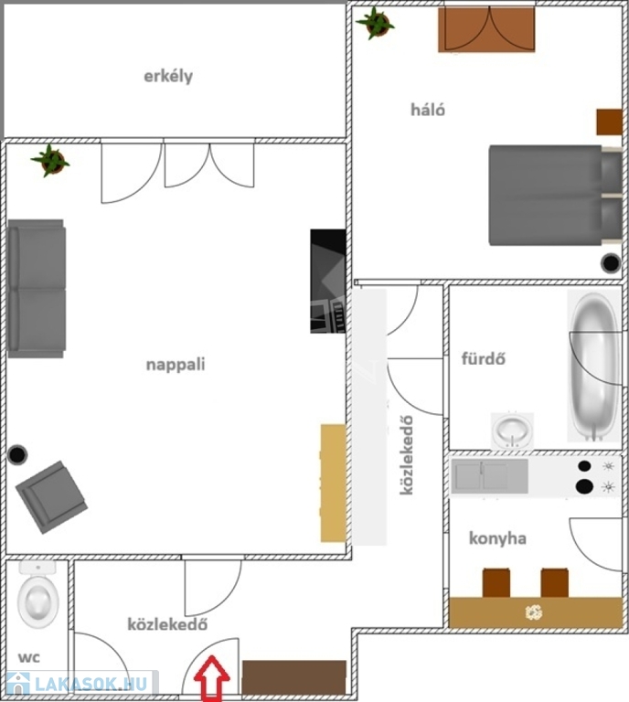 56 m² (52 + 4 m² erkély) | 1+1 szoba | ablakos konyha | alacsony rezsi