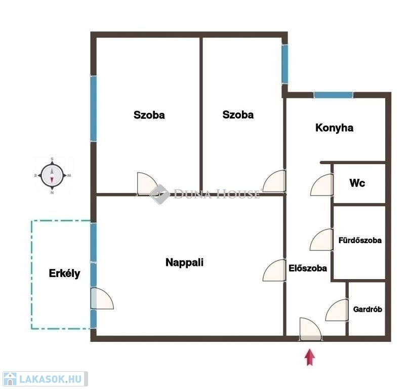 A lakás remek elrendezésű, ideális családosok, összeköltözők számára is. Gardróbszobája igazán praktikus, a mosógépkiállás ide került áthelyezésre, mely lehetővé tette, hogy a fürdőszobába sarokkádat építhessenek be. A gardrób egyébként könnyen a fürdőszobához is nyitható.