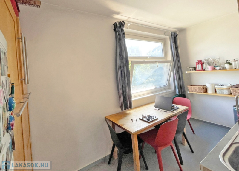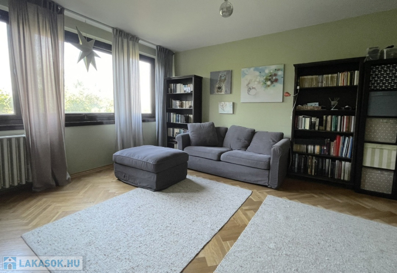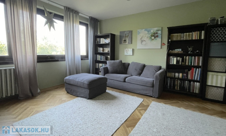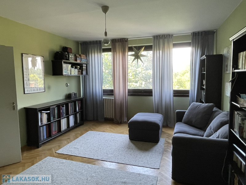 A lakás körbejárható, a helyiségek jól használhatók akár családoknak, akár pároknak vagy idősebbeknek is. A nagy nappali és az egyik hálószoba ablakai, valamint a loggia csendes, zöld kertekre néznek, nem utcafrontra. A másik szoba és a konyha kis előkerttel elválasztott utcára néz.
