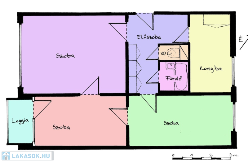 Nappali + 2 hálószoba (az egyik szobához 2,5 m²-es loggia tartozik)