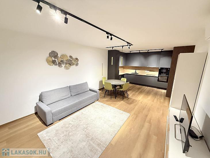 2023-ban épült, új állapotú, első tulajdonostól eladó egy 55 m²-es, igényesen kialakított lakás, amelyhez egy 40 m²-es privát kert is tartozik, tökéletes választás pihenéshez vagy akár baráti összejövetelekhez. A lakás egy rendezett, modern társasházban található, csendes, zöldövezeti környezetben