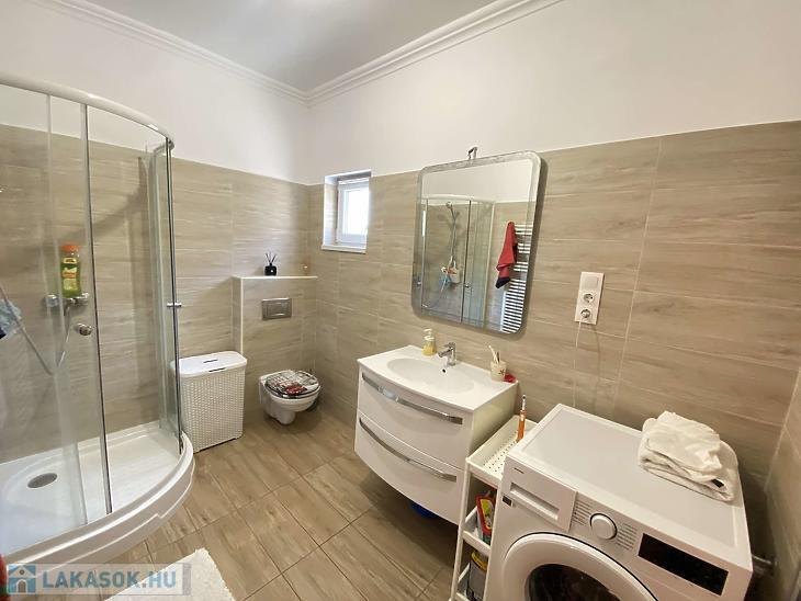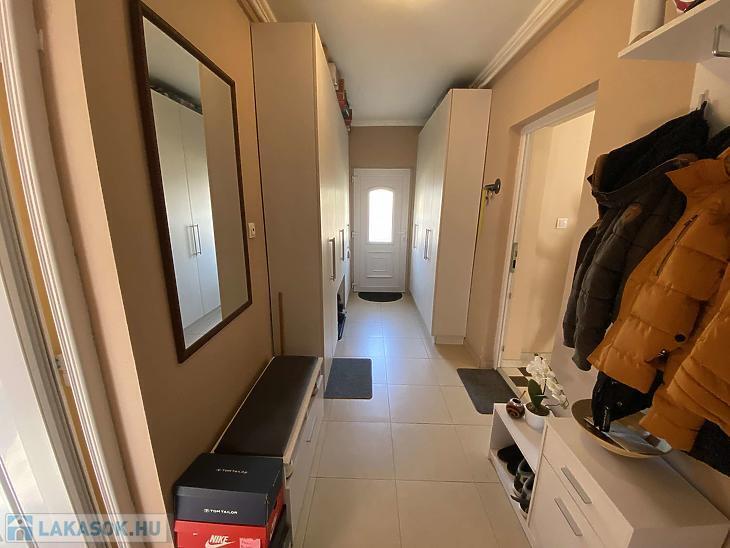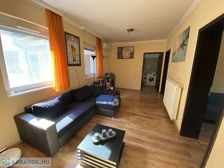 A 60 nm-es lakás világos, jó elosztású. A fűtésünkről kombi cirkó gondoskodik. A nyílászárók műanyag hangszigeteltek. A szobákban jó állapotú laminált parketta a vizes helyiségbe járólap található. Hűtő fűtő klíma beszerelésre került a nappaliba. Ügyvédi használati megosztással és 50 nm kertkapcsolattal rendelkezik.
