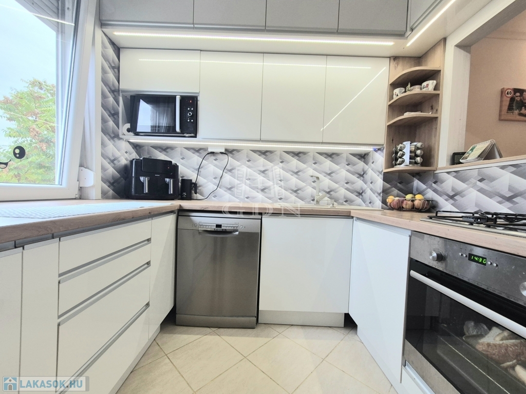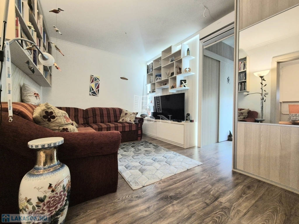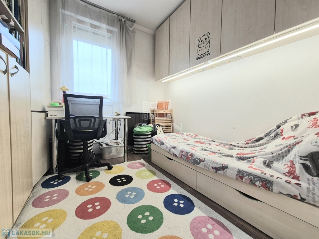 XVI. kerület központi részén, kis lakásszámú, 4 emeletes társasház 2. emeletén eladásra kínálok, egy 80 m2-es, kertre néző-csendes, ablakos konyhás, 2+2 fél szobás, felújított, műszakilag korszerűsített, alacsony fenntartású, klimatizált panellakást.