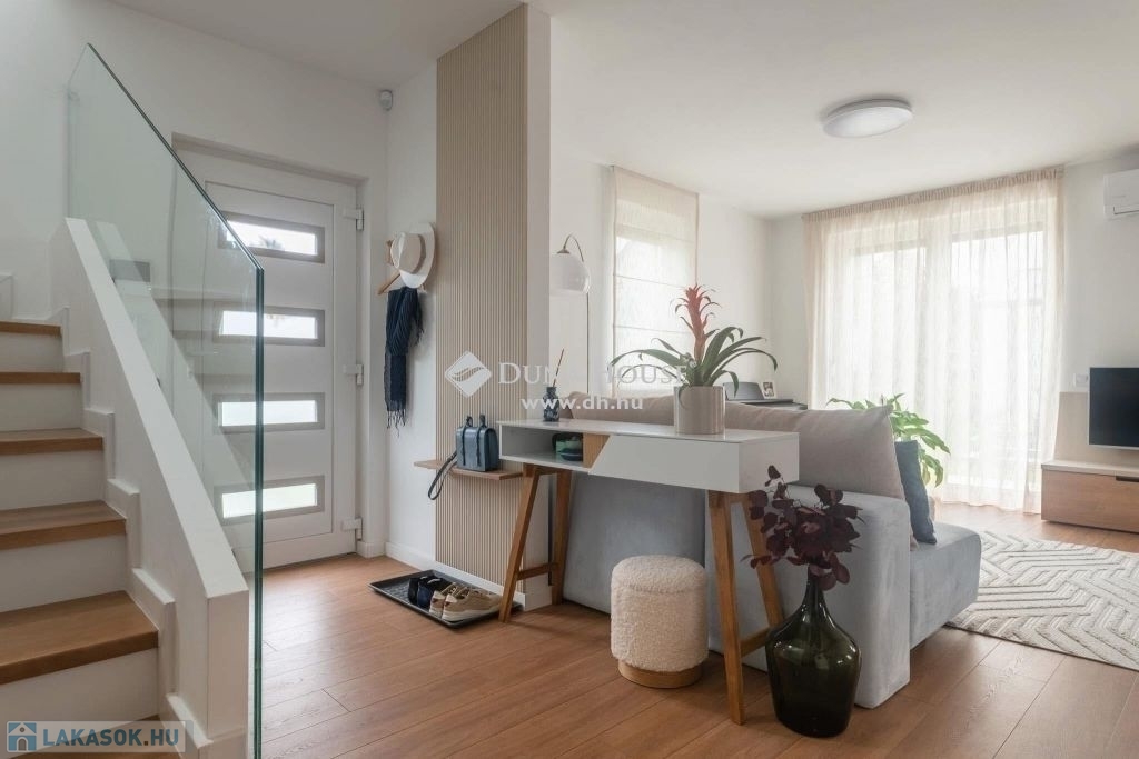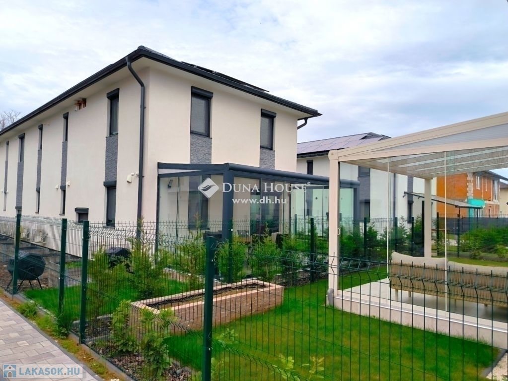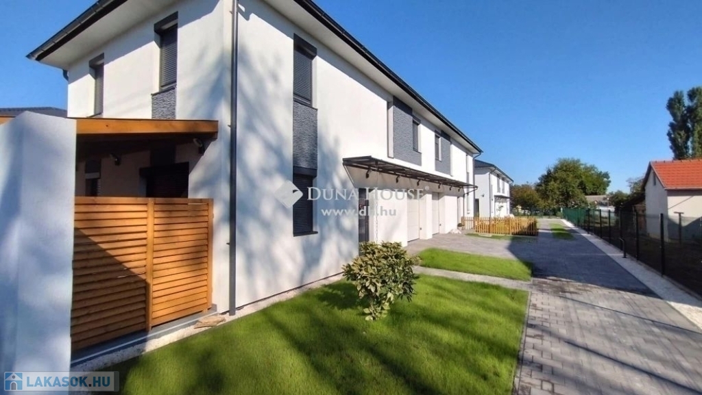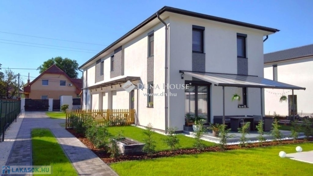 Alapterület: nettó 120 m², teraszok, garázs, tároló, kert nélkül. (Bruttó 145 nm.)Szobák száma: Nappali + 3 hálószoba két szinten.Telek mérete: ~220 m²Állapot: Új építésű.Fűtés: Elektromos (NOBO infra panel), 3 db klímaElhelyezkedés: Budapest XVII. kerület, Rákoscsaba-Újtelep, Naplás-tó közelében.Leírás:Eladó Budapest XVII. kerületének egyik legkedveltebb kertvárosi részén, Rákoscsaba-Újtelepen egy modern, új építésű ingatlan. A Naplás-tó közelsége, a csendes környék és a magas műszaki tartalom teszi igazán különlegessé ezt az ingatlant.Az otthon nappaliból, 3 külön nyíló hálószobából, teraszból és közvetlen kertkapcsolatból áll, mely ideális választás lehet:- fiatal pároknak családalapításhoz,- több gyermekes családoknak,- nyugodt életre vágyó idősebbeknek.Felszereltség, extrák az árban:- Kiépített és beüzemelt napelem rendszer- Norvég NOBO elektromos fűtőpanelek- 3 db hűtő-fűtő klímaberendezés- Teljes értékű riasztórendszer- Kamerás kaputelefon- Motoros garázskapu és kertkapu, távirányítással- Automata öntözőrendszer + füvesített kert- Automata külső világítás- Fedett garázs- Burkolatok és szaniterek még választhatók!Elhelyezkedés, közlekedés:A ház Rákoscsaba-Újtelep csendes utcájában található, a Naplás-tó szomszédságában, családbarát környezetben.- Rákoscsaba-Újtelep vasútállomás – Keleti pályaudvar kb. 19 perc.176E: Örs vezér tere M+H és Rákoscsaba-Újtelep Tóalmás utca között közlekedik, összekötve a városrészt a metróhálózattal.98-as busz: Kőbánya-Kispest M és Rákoscsaba vasútállomás között jár, biztosítva a kapcsolatot a metróval és más városrészekkel.275-ös busz: Rákoscsaba vasútállomás és Piski utca (óvoda) között közlekedik, kiszolgálva a helyi igényeket.297-es busz: Rákoscsaba-Újtelep vasútállomás és Nyeremény utca között jár, segítve a helyi közlekedést.908-as éjszakai busz: Móricz Zsigmond körtér M és Rákoscsaba-Újtelep Tóalmás utca között közlekedik, biztosítva az éjszakai elérhetőséget.