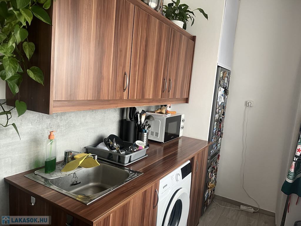 Az előszobában egy hatalmas, sok pakolási lehetőséggel rendelkező beépített gardrób szekrény lett kialakítva. A nagyobb szoba 24,8m²-es, melyhez tartozik egy csendes, nyugodt zöld-övezetre nyíló erkély. A kisebb 12m²-es szoba klímával felszerelt, mely az egész lakás kellemes hőfokon tartására alkalmas. A fürdőszoba és a wc külön helyiségben találhatóak és mind a két helység új, modern burkolatot kapott. A konyha 5,5m² -es és tartozik hozzá egy igényesen kialakított 1,25m²-es kamra.