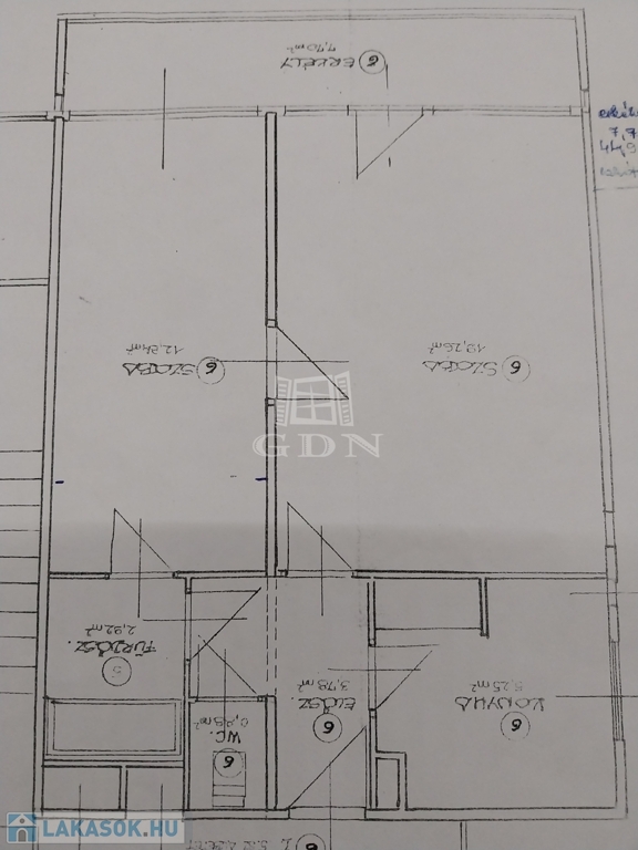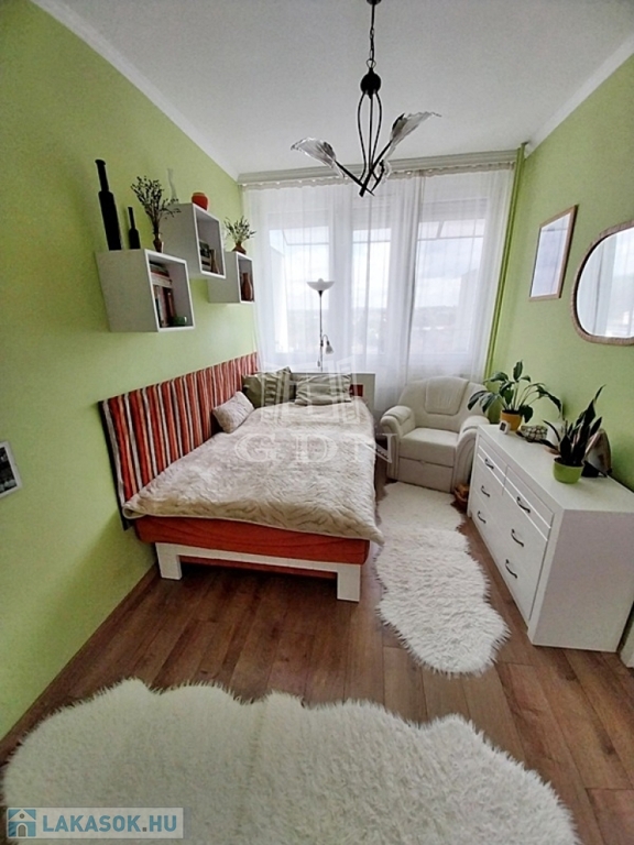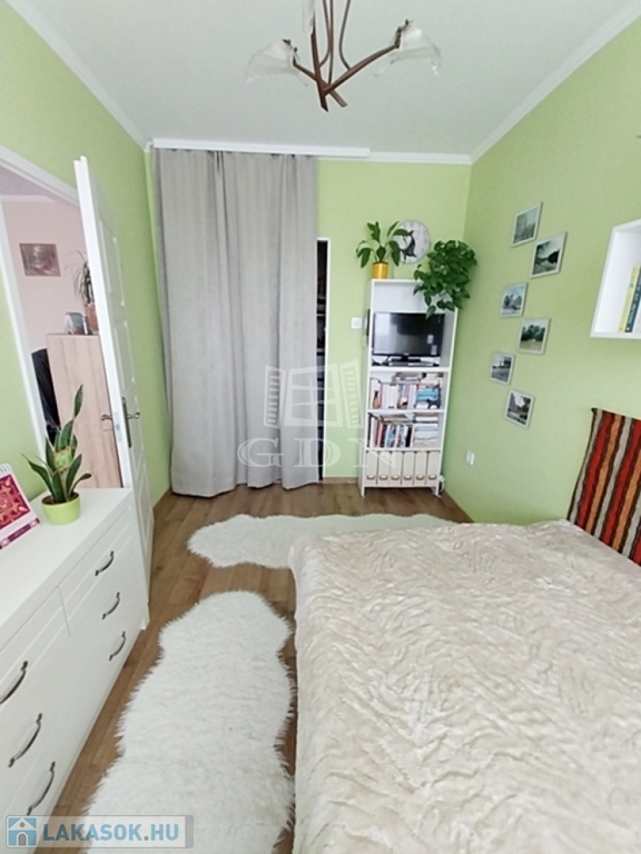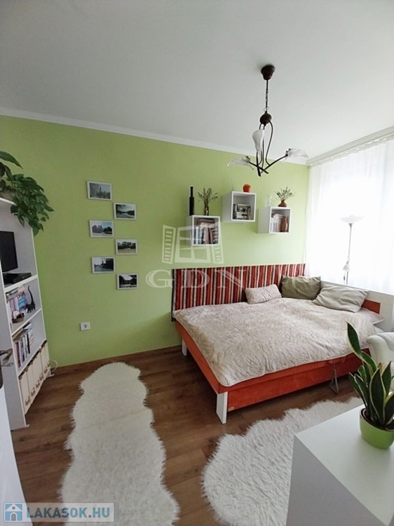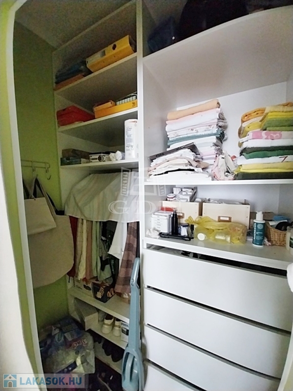 A nappali szobából lehet átlépni a 12.8 nm-es hálószobába, a hálószobához kapcsolódik a 2 nm-es gardrób tároló helyiség.
