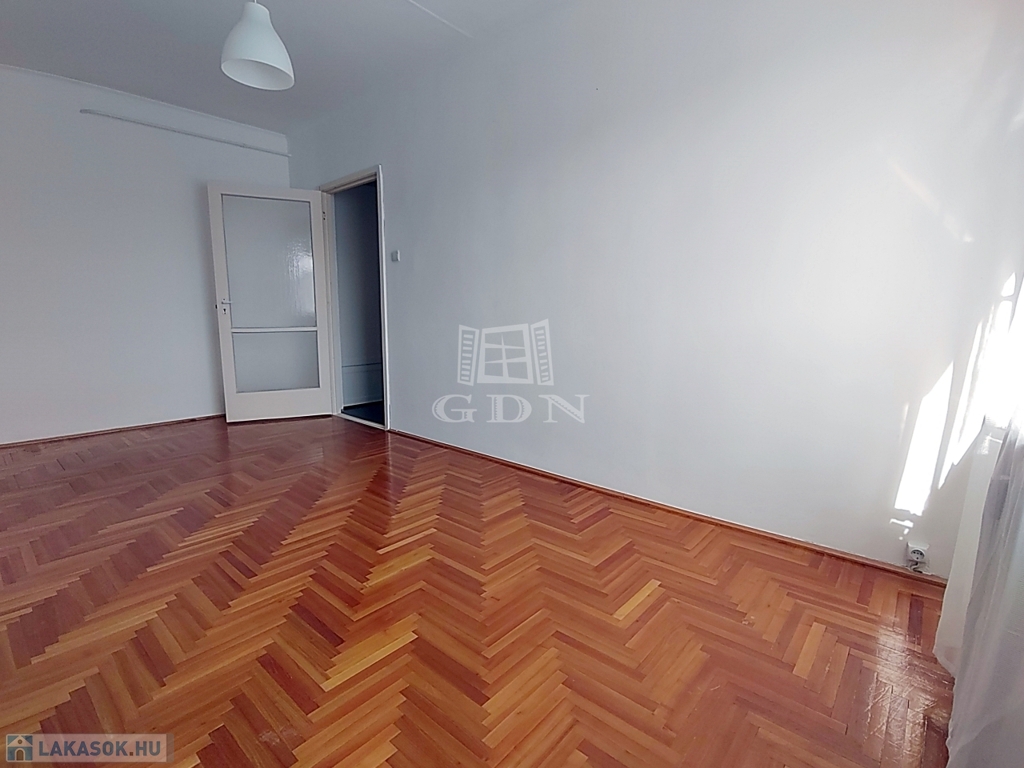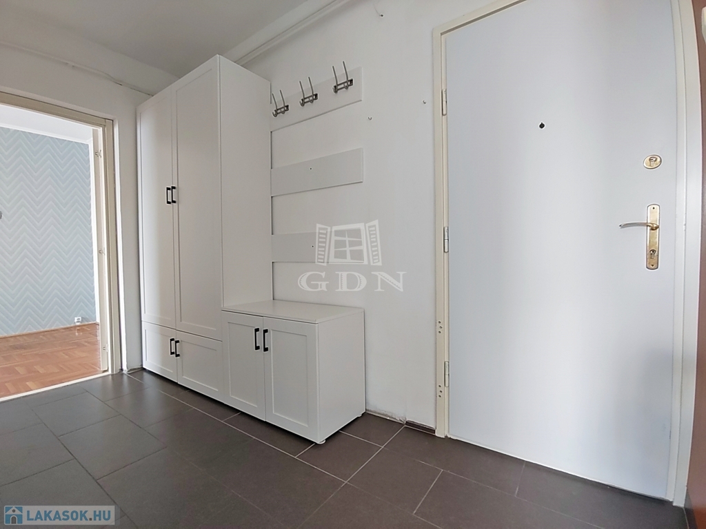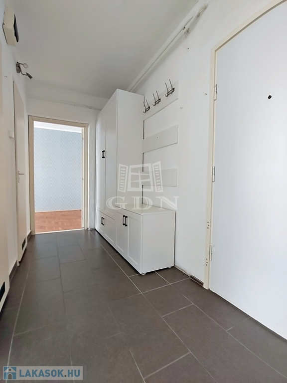 A lakás praktikus elrendezésű: minden helyiség külön nyílik az előszobából – nappali, hálószoba, konyha, fürdőszoba és külön WC.