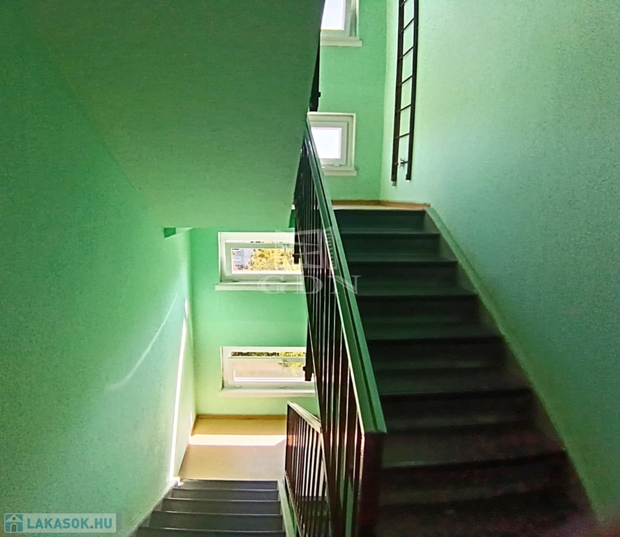 A társasház is folyamatosan karbantartott: a közös nyílászárók műanyag típusúak, a lépcsőház festése és a lépcsők burkolatai megújultak.