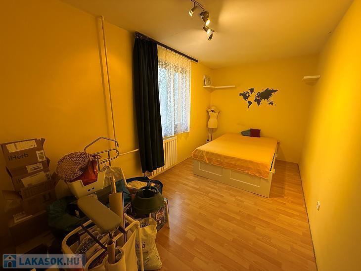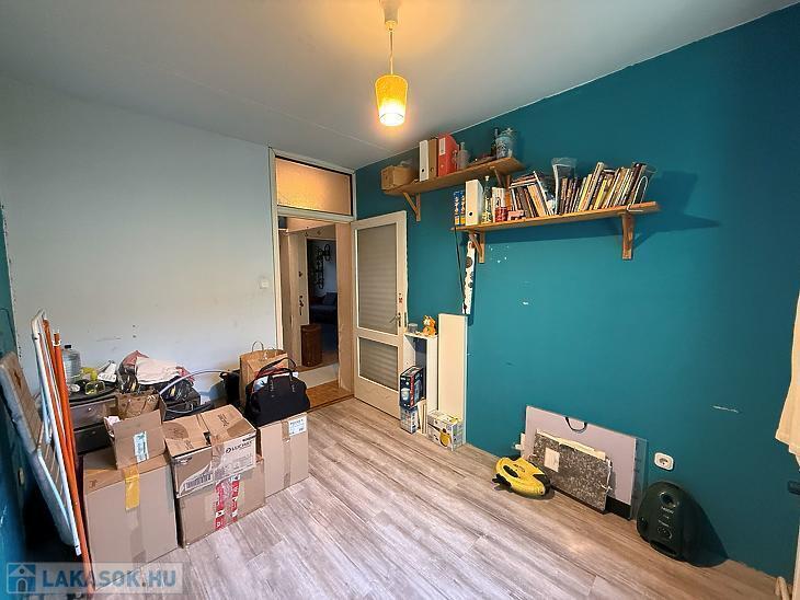 A hálószobák laminált parkettásak, a nappali padlószőnyeges, a konyha, étkező, illetve a közlekedő linóleumos, a fürdőszoba és a wc pedig járólappal burkolt.