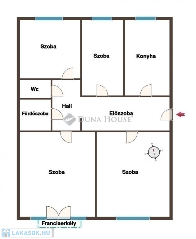 Az ingatlanban a már említett 4 különnyíló szobán kívül egy ablakos konyha, egy előszoba, egy hall, egy fürdőszoba, és egy külön wc helyiségek kaptak még helyet. A használaton kívüli dolgok tárolását számos beépített szekrény segíti, ezen felül a ház pincéjében is használható még tárolóhelyiség. A legnagyobb szobából zöldre néző franciaerkély nyílik. Elrendezése kiváló, a helyiségek mindegyike funkciónként különnyíló, így nagyobb családok számára, illetve bérbeadásra is ideális, utóbbi esetben akár szobánként, magas hozammal kiadható.