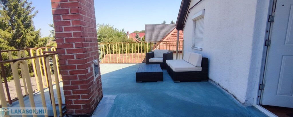 Ez egy 2 lakásos, ügyvéd által szerkesztett használati megosztással rendelkező családi ház. (A földszint egy teljesen külön bejáratú lakás.) A tetőtéri önálló bejáratú, saját, kombi (meleg vizet + fűtést is nyújtó) cirkófűtéssel is rendelkező lakás a hátsó kertre néző, hatalmas 26, 81 nm-es terasszal és 7,84 nm erkéllyel rendelkezik!
