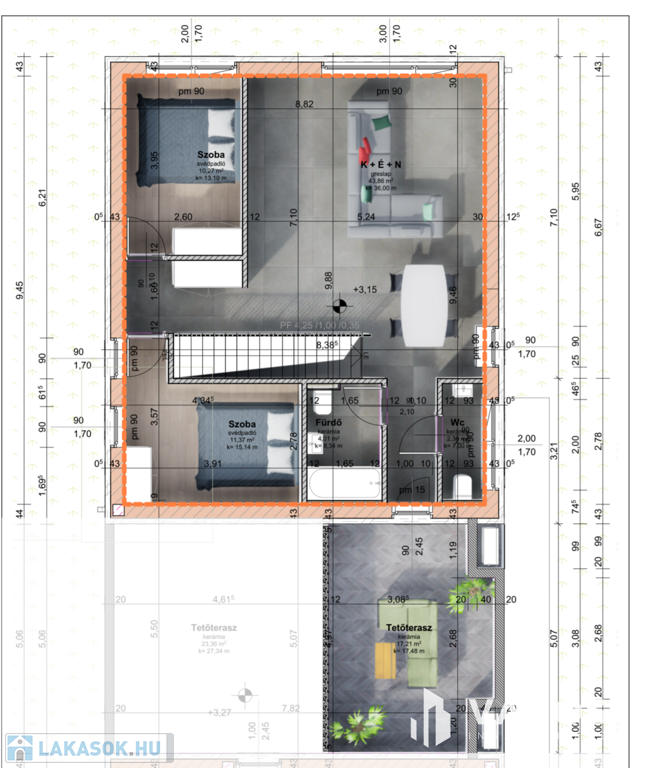 - Árnyékolástechnikai előkészítés: vakolható redőnyszekrények, redőny, szúnyogháló igény szerint beépíthető