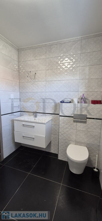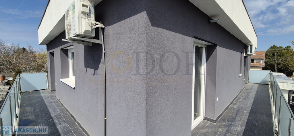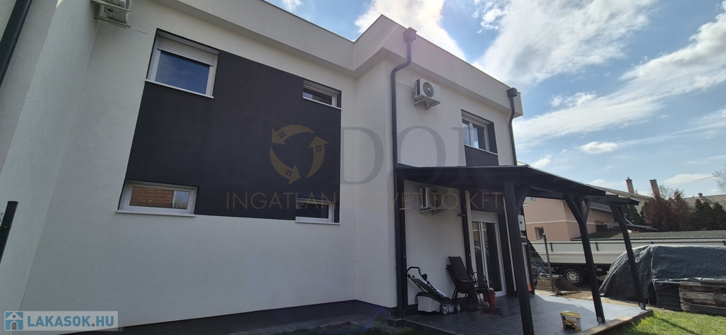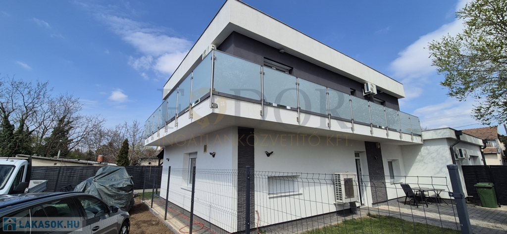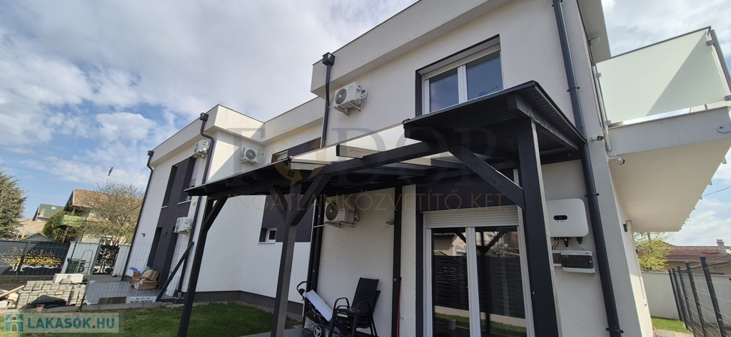 Egy 320 m²-es telken helyezkedik el ez a 129 m²-es, kétszintes, újszerű állapotú ikerház bal oldali lakása, amely minden részletében a mai kor igényeihez igazodik – legyen szó kényelemről, energiatakarékosságról vagy stílusról.Az ingatlan elrendezése rendkívül praktikus: amerikai konyhás nappali + 5 hálószoba biztosítja a tágas életteret akár nagyobb család számára is. A felső szintet körbe ölelő erkély különleges hangulatot ad a háznak, ahol a reggeli kávé vagy az esti pihenés is igazi élménnyé válik.