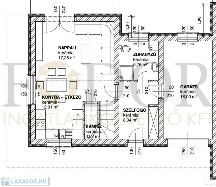 • 30 cm Porotherm főfalak, 10 cm válaszfalak
