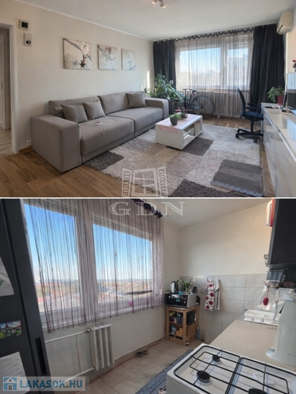 Világos, jó elosztású lakás, ahonnan gyönyörű városi panoráma nyílik a nappaliból, két hálószobából és a konyhából is. A ház végei szigeteltek, így a lakás télen is kellemes hőmérsékletű.