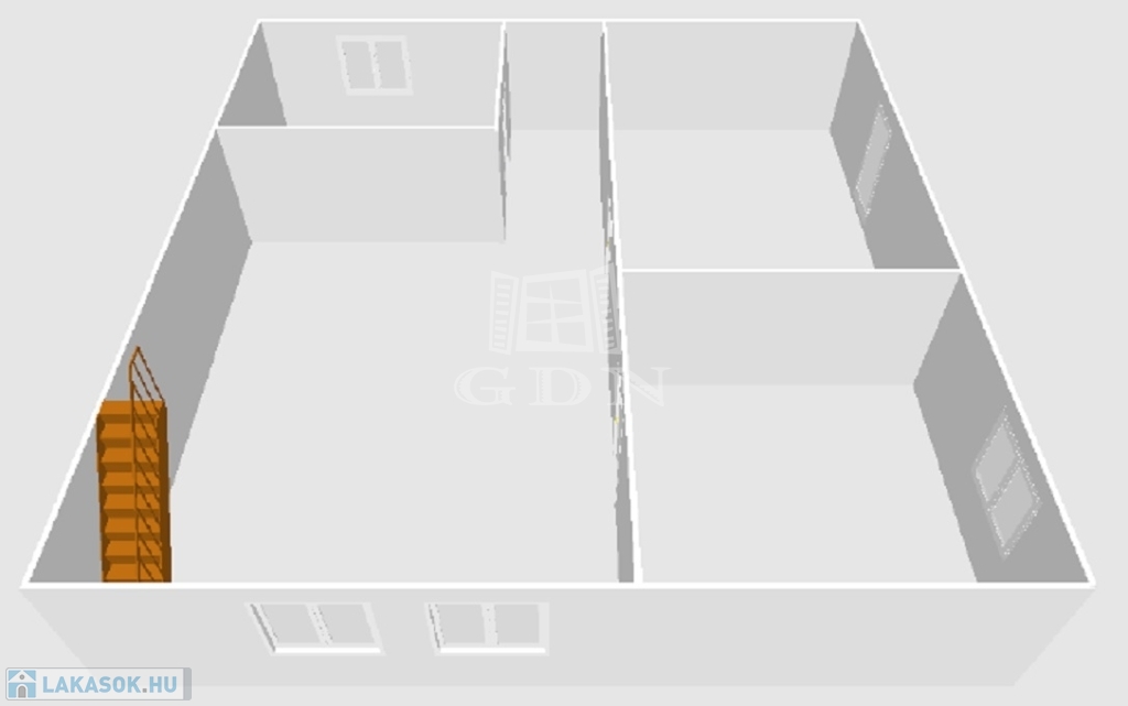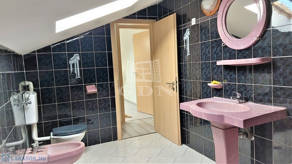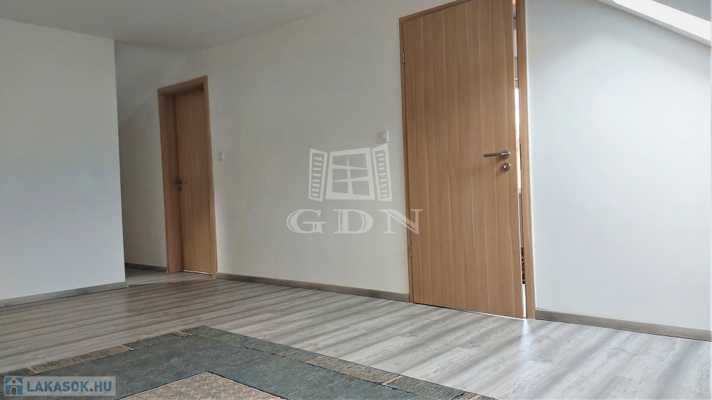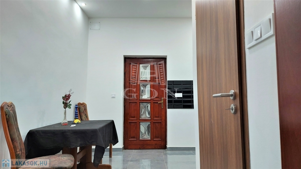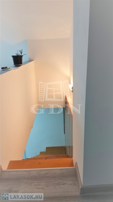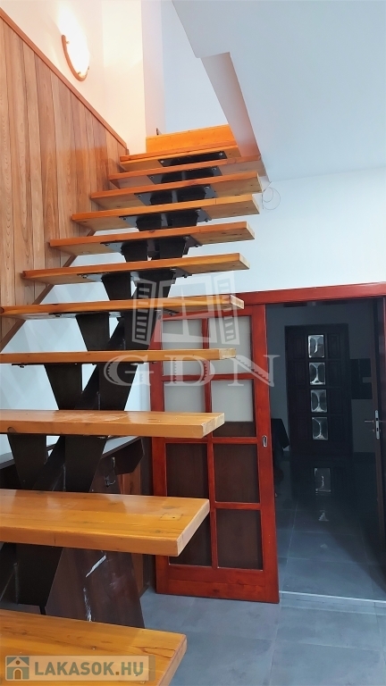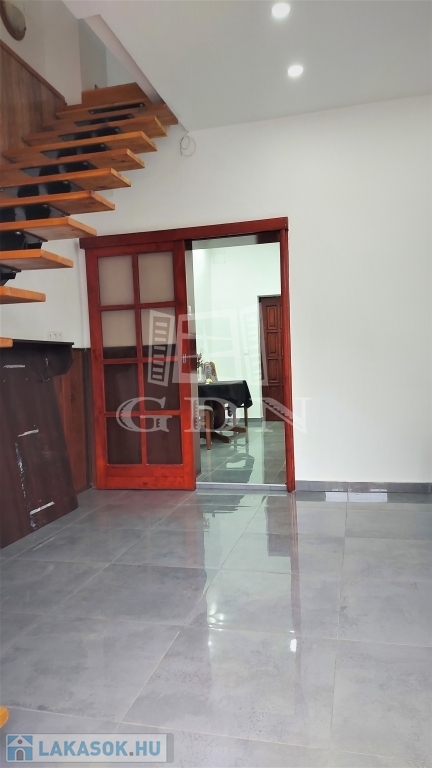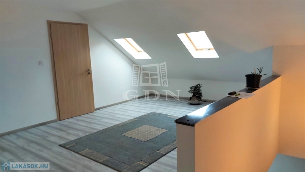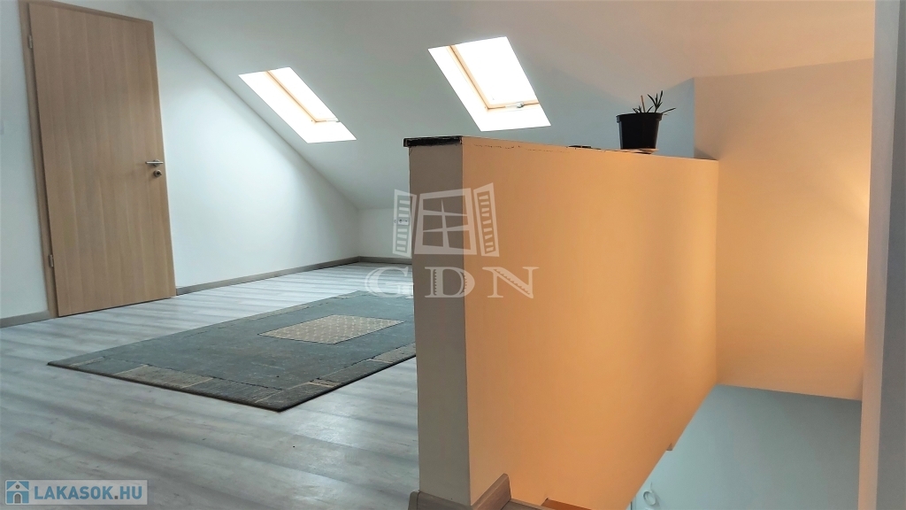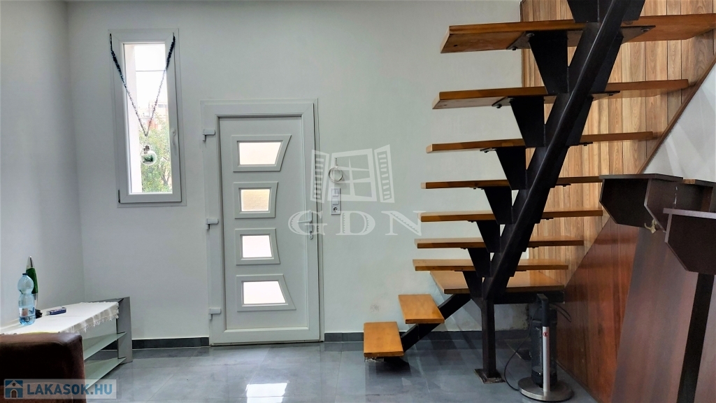 A belső kétszintes lakásba lépve a földszinten, az előszobából, lépcső vezet az emeletre, majd tovább haladva az ebédlős konyhából nyílik a felújított, zuhanyzós fürdő, illetve egy kamra, ahonnan a pincébe juthatunk.Az emeleten, nagy nappaliból nyílik a két szoba és a kádas fürdőszoba.
