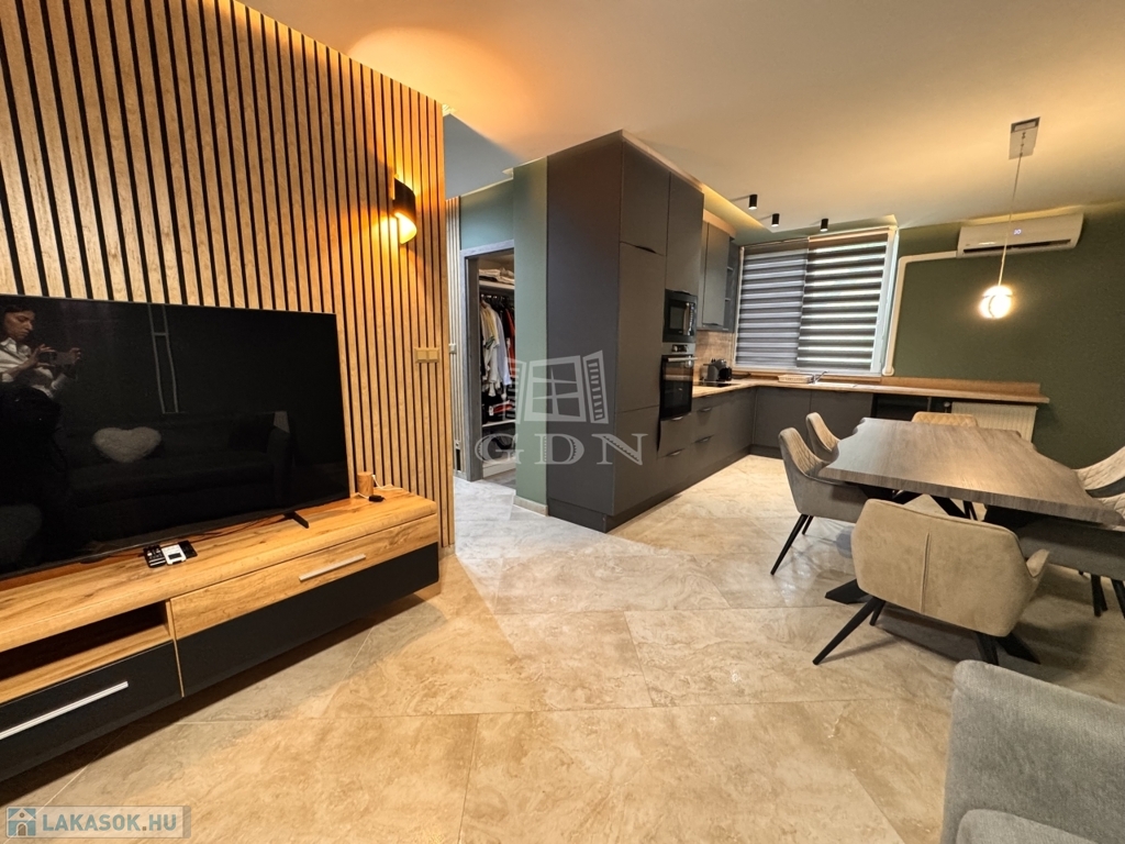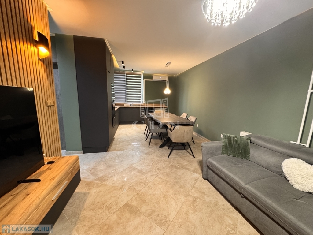 • de könnyedén értelmezhető 1,5 szobás amerikai konyhás nappaliként is.