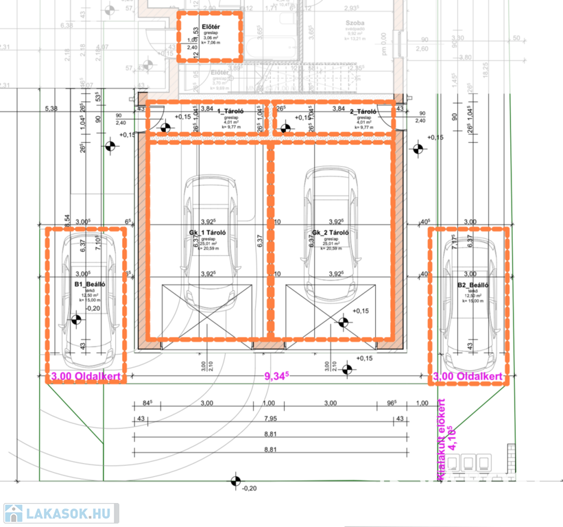 - A lakásokhoz garázs vásárolható 5,5 Mft, vagy gépkocsi beálló 1,5 Mft.