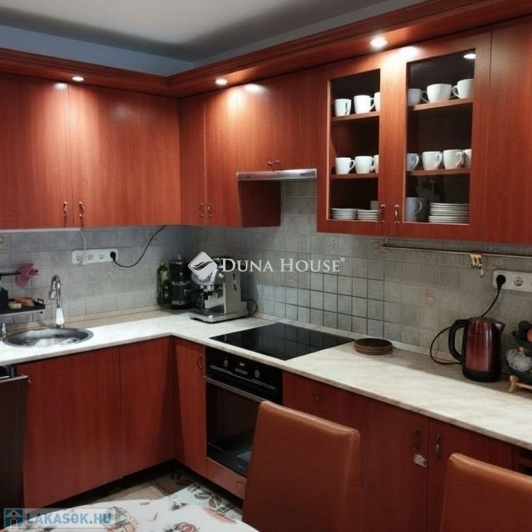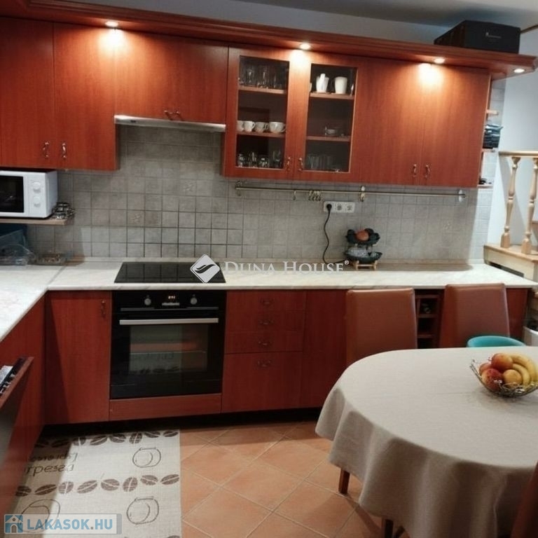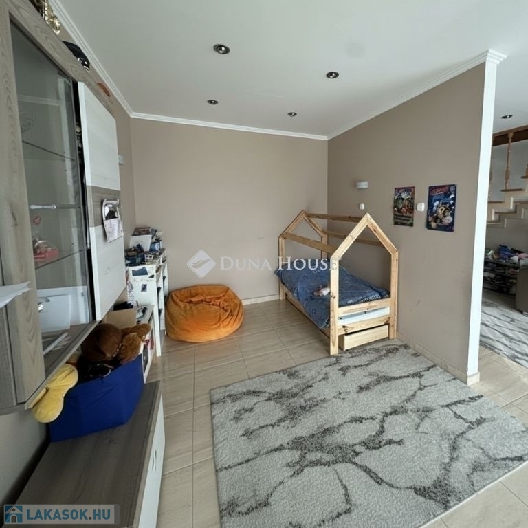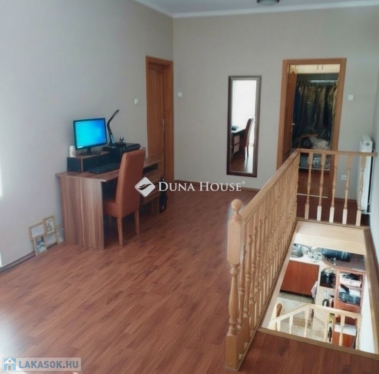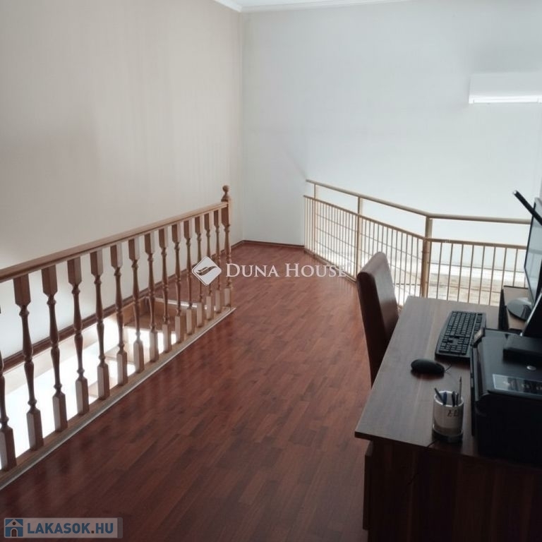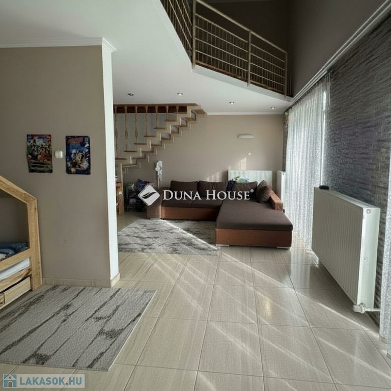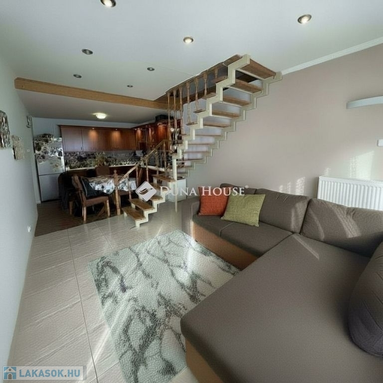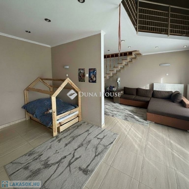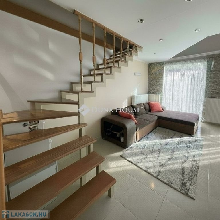 Eladó ez a belső kétszintes lakás egy 2003-ban épült, 20 lakásos porotherm vázkerámiás társasház negyedik emeletén.A lakás három szobás, de akár négy szobássá is alakítható, így rugalmasan igazítható a család igényeihez. A 10 cm-es belső válaszfalak lehetőséget adnak a terek egyedi kialakítására.Földszint (52 m2) :Előtér a bejárattal szemben praktikus gardróbszekrény gondoskodik a kabátok és lábbelik rendszerezéséről.Jobbra nyílik a fürdőszoba, külön wc.Az előszobából a tágas konyhaétkezőbe érkezünk, innen jutunk tovább a nagy nappaliba, amelyhez egy részben fallal elválasztott, külön nyíló szoba is kapcsolódik.Galéria (43 m2):A felső szinten a belmagasság minden helyiségben 2,80 m felett van, így a terek itt is tágasak és kényelmesek. A lépcsőn felérve a galéria térbe érkezünk, ahol egy dolgozószoba kapott helyet. Mellette található egy fallal részben leválasztott szobarész üvegtégla fallal, valamint egy külön hálószoba és egy praktikus gardrób is.A lakásban többrétegű műanyag nyílászárók biztosítják a csendet és a hőszigetelést, elektromos redőnyökkel felszerelve.Az emeleten található tetőablak is elektromosan nyitható.A belmagasság mindenhol 2,80 m felett van, így a terek tágasak és világosak, a galéria szinten is kellemes légérzetet biztosítva.A ház központi fűtéssel rendelkezik, egyedi mérőkkel, így a fogyasztás könnyen ellenőrizhető.Teremgarázs beálló (20 m2) + tároló (4 m2):A vételár tartalmaz egy teremgarázs kocsibeállót, valamint a mögötte található tárolót, amely praktikus pluszt jelent a mindennapokban.A lakás a negyedik emeleten található, de lifttel is könnyen megközelíthető; a lift modern és újszerű állapotban van.A társasházhoz egy hatalmas, füvesített belső kert tartozik grillsütővel, amely ideális a pihenésre és a baráti összejövetelekre.Ez a lakás ideális választás azoknak, akik szeretik a tágas tereket és a gyönyörű napfelkeltéket. A ház kellemes, barátságos lakóközösséggel rendelkezik. Az ingatlan környéke kiváló infrastruktúrájú: a közelben buszmegállók, boltok, iskolák, óvodák és bölcsődék találhatók. Számos kikapcsolódási lehetőség és vendéglátó egység is könnyen elérhető.