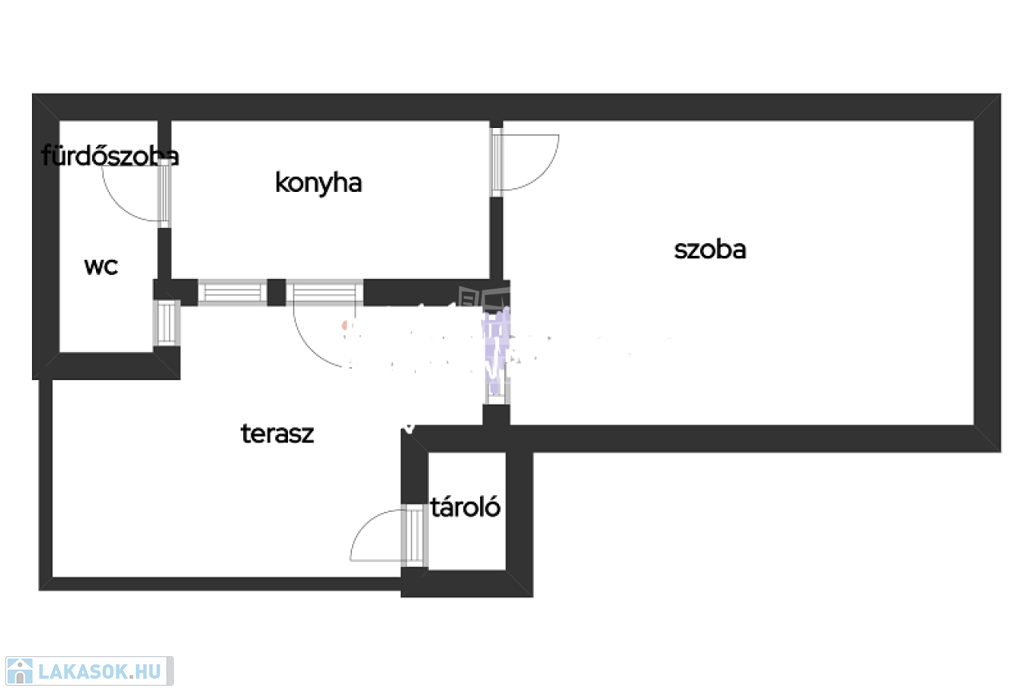 Ez a lakás a telek bal oldalán a legbelső, egy kis intim sarok, terasszal és tárolóval A telken további 3 lakás van. egy mellette és a telek domborzatának köszönhetően (lépcsőzetes telek) a másik kettő feljebb. Az egyik a telek másik felén, amely teljesen el lesz választva a többitől.