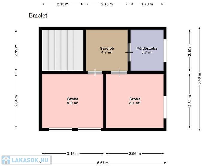Elosztása kiváló, minden helyisége külön nyílik és rendkívül világos.