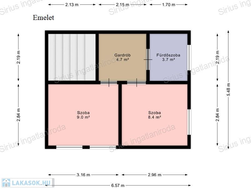 Elosztása kiváló, minden helyisége külön nyílik és rendkívül világos.