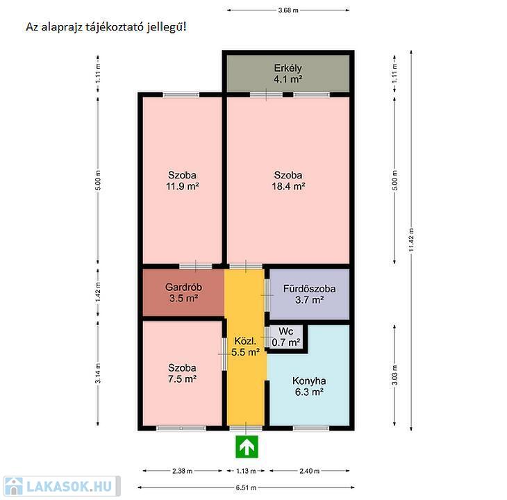 A TÁGAS NAPPALI MELLETT KÉT KÜLÖN NYÍLÓ HÁLÓSZOBA, egy erkély, modern konyha, fürdő és külön WC teszi praktikussá az elrendezést.