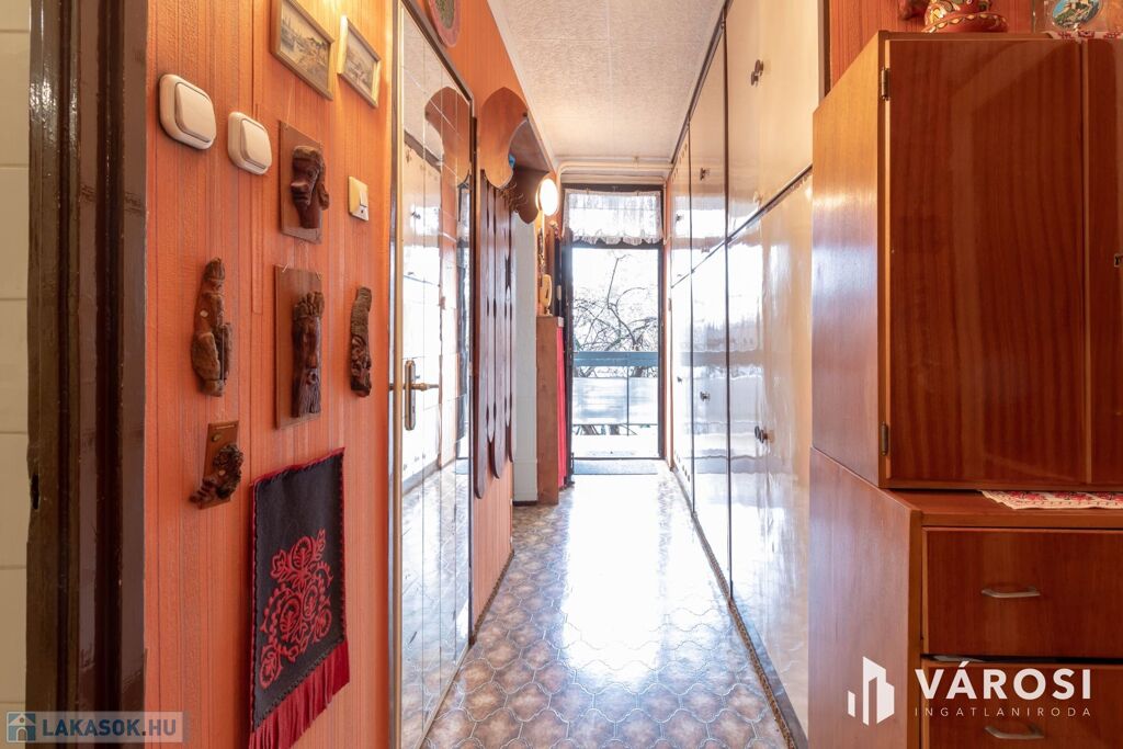 Különlegessége a bejárat előtti 9 m2-es, zárt folyosó rész, amely használat szerint csak ehhez a lakáshoz tartozik és ideális babakocsi, kerékpárok tárolására, növények elhelyezésére.