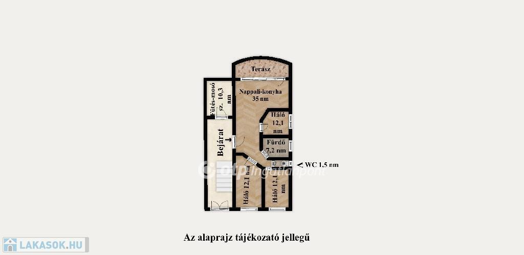 A lakásba belépve tágas, napfényes terek fogadják a látogatót. Három külön nyíló hálószobája ideális választás családok számára, míg az egybenyitott nappali?étkező?konyha a mindennapok kényelmes, központi életterét adja. A sarokkádas fürdőszoba pedig a pihenést és feltöltődést szolgálja.