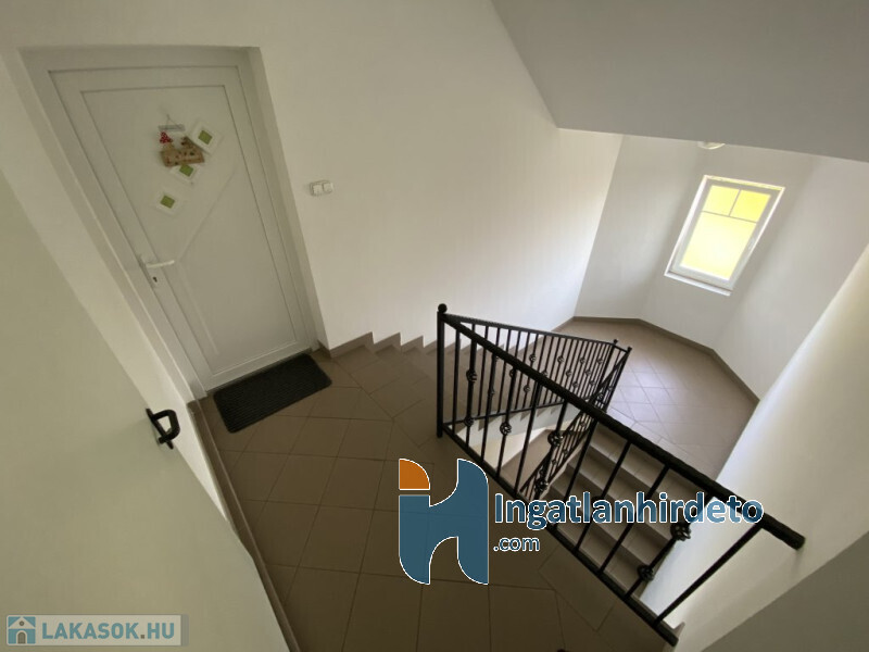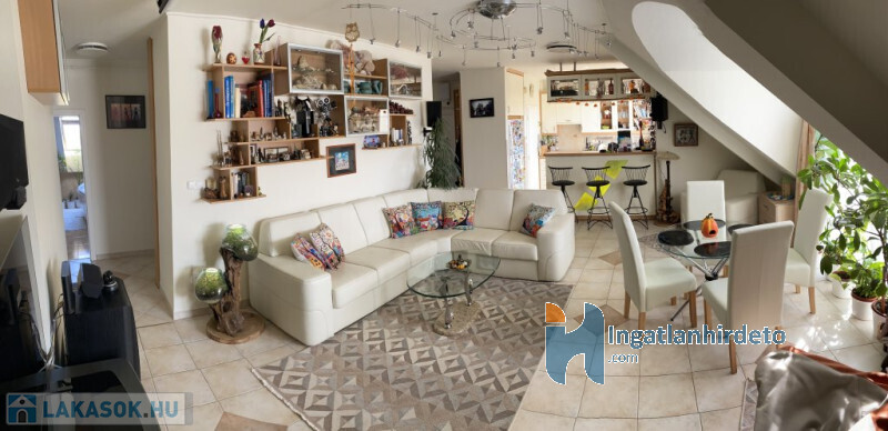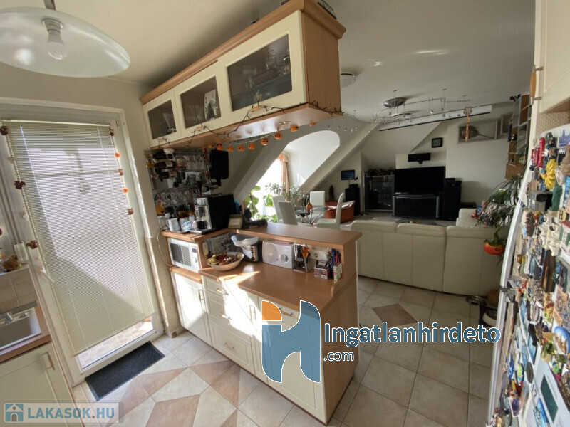 Elhelyezkedése: Belterület Emeleti elhelyezkedés: Emeleten Emelet száma: 3 Épület emeleteinek száma: 3 Állapota: Kiváló Komfort besorolása: összkomfortos Építési éve: 2008 Alapterülete: 102 m2 Szobák száma: 4 + 1 szoba Közművek: Gáz Fűtés módja: Gáz Fűtés típusa: Cirkó Homlokzat állapot: új Építési mód: Tégla Tető formája: Lapos Parkolási lehetőség: Garázsban, Utcán, Parkolóházban Kilátás: Utcafronti kilátás, Udvari kilátás, Városi panoráma Napelem: Nincs Jellemzői: Alacsony rezsi, Csendes környék, Jó közlekedés, Redőny, Ikergarázs, Légkondicionáló, Étkező, Udvari terasz, Amerikai konyha, Beépíthető tetőtér, Beépített szekrény, Beépített konyhabútor, Kaputelefon, Kert, Parketta burkolat, Zöldterület, Jó közbiztonság, Beépített tetőtér Energetikai besorolás: Nincs adat Egyéb jellemzők: Terasz, Lift, Tetőtér Tv, Internet: Kábeltévé, Internet, Vezetékes telefon Közelben: Iskola, Óvoda, Közelben metró, Villamos, Vasútállomás, Autóbuszállomás, Helyi autóbuszállomás, Orvosi rendelő, Bolt, Gyógyszertár, Postahivatal, Vendéglátó egység, Autópálya Rezsi költség(Ft): 50000 Terhelések: Tehermentes ingatlan Eladásra vonatkozó információk: Az ár tartalmazza a teljes berendezést, Azonnal beköltözhető