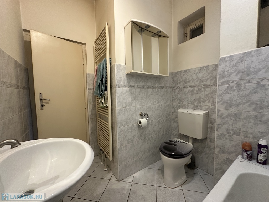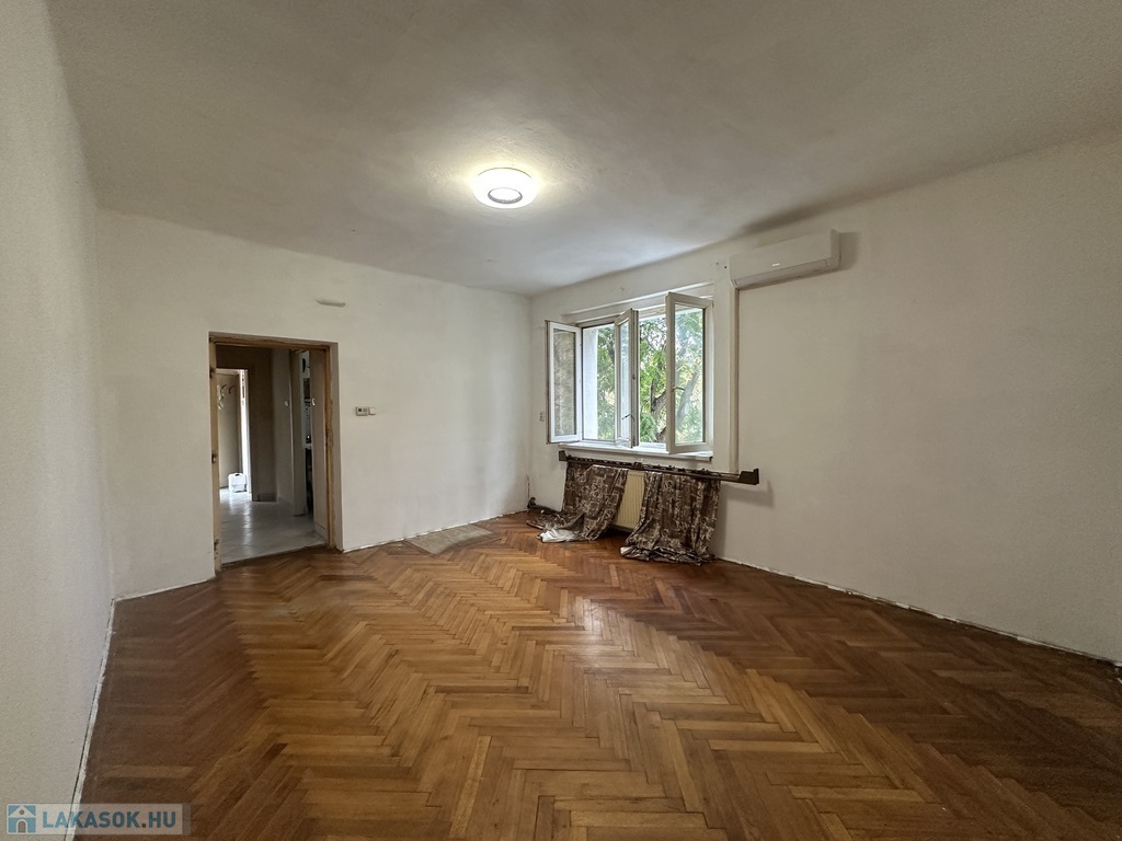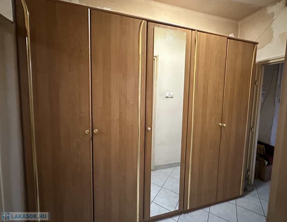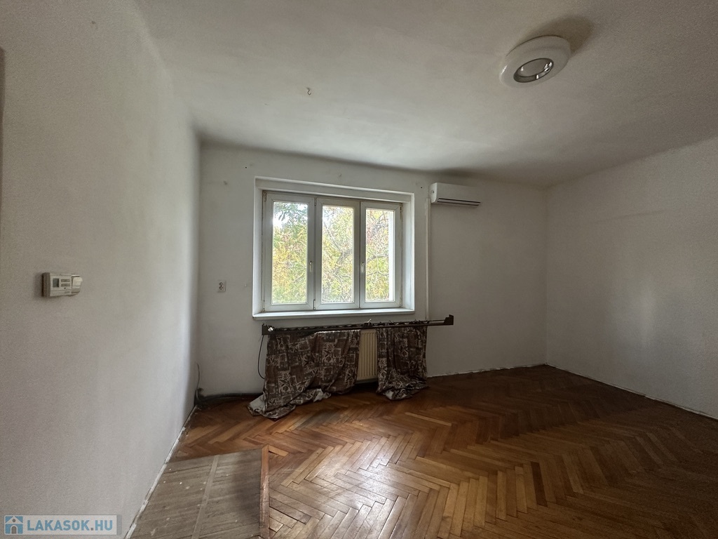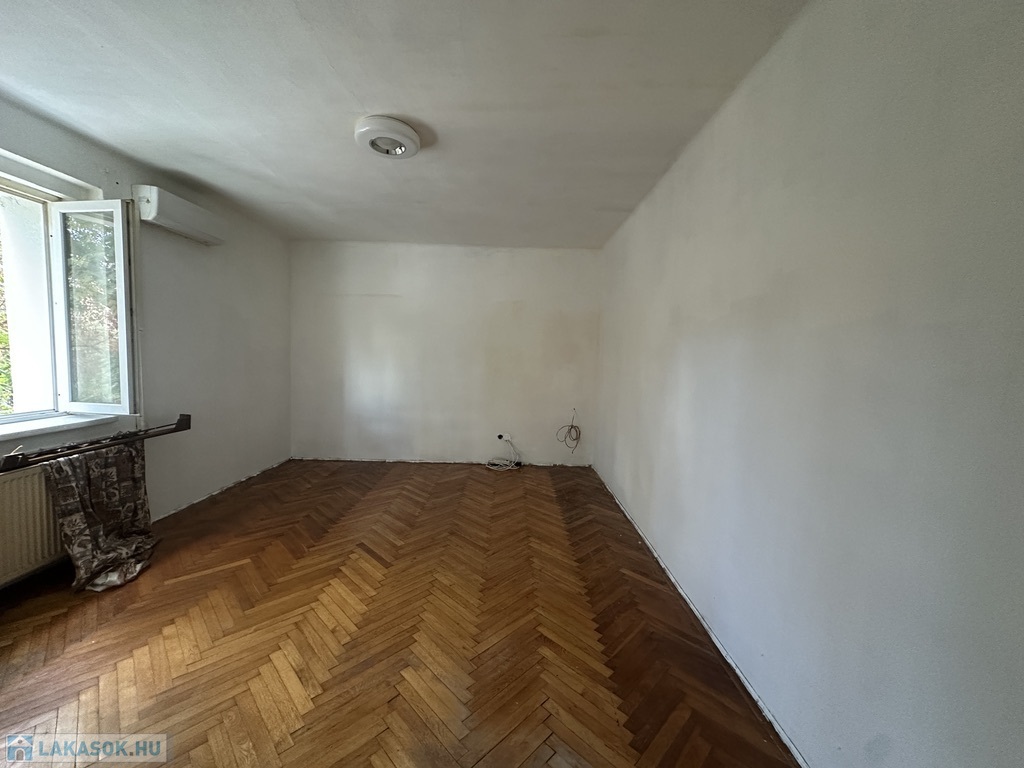 A szoba parkettás, a többi helyiség járólapos, a lakásban található csempékből és járólapokból még van a pincében. Kisebb átalakítás és festés igényelt. A lakáshoz tartozik egy zárható saját tároló a pincében; parkolási lehetőség az épület előtt.