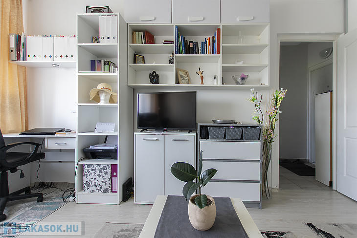 A lakás egyik különlegessége az egyedileg, asztalos által készített beépített szekrényrendszer és konyhabútor, amelyek a vételár részét képezik, így az új tulajdonos azonnal egy jól felszerelt, rendezett otthonba költözhet.