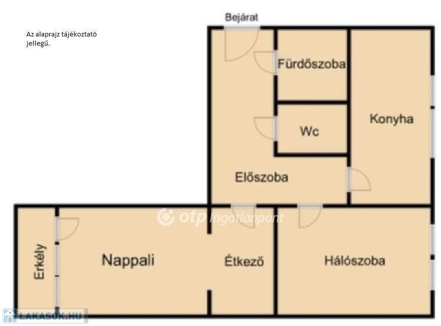 Egy hálószoba, nappali+étkező, előszoba, konyha, fürdőszoba és külön WC, valamint egy 4 nm-es erkély. Kiváló fekvésének köszönhetően rendkívül világos. Az ingatlan folyamatos felújítás alatt áll. Néhány éve megtörtént a nyílászárók, illetve az elektromos vezetékek cseréje. A további felújításhoz megvásárlásra került a szükséges laminált parketta, fali csempe, járólap. Az új tulajdonos ízlése szerint fejezheti be. A radiátorok egyedi mérővel vannak ellátva a kedvezőbb fűtésszámla miatt.